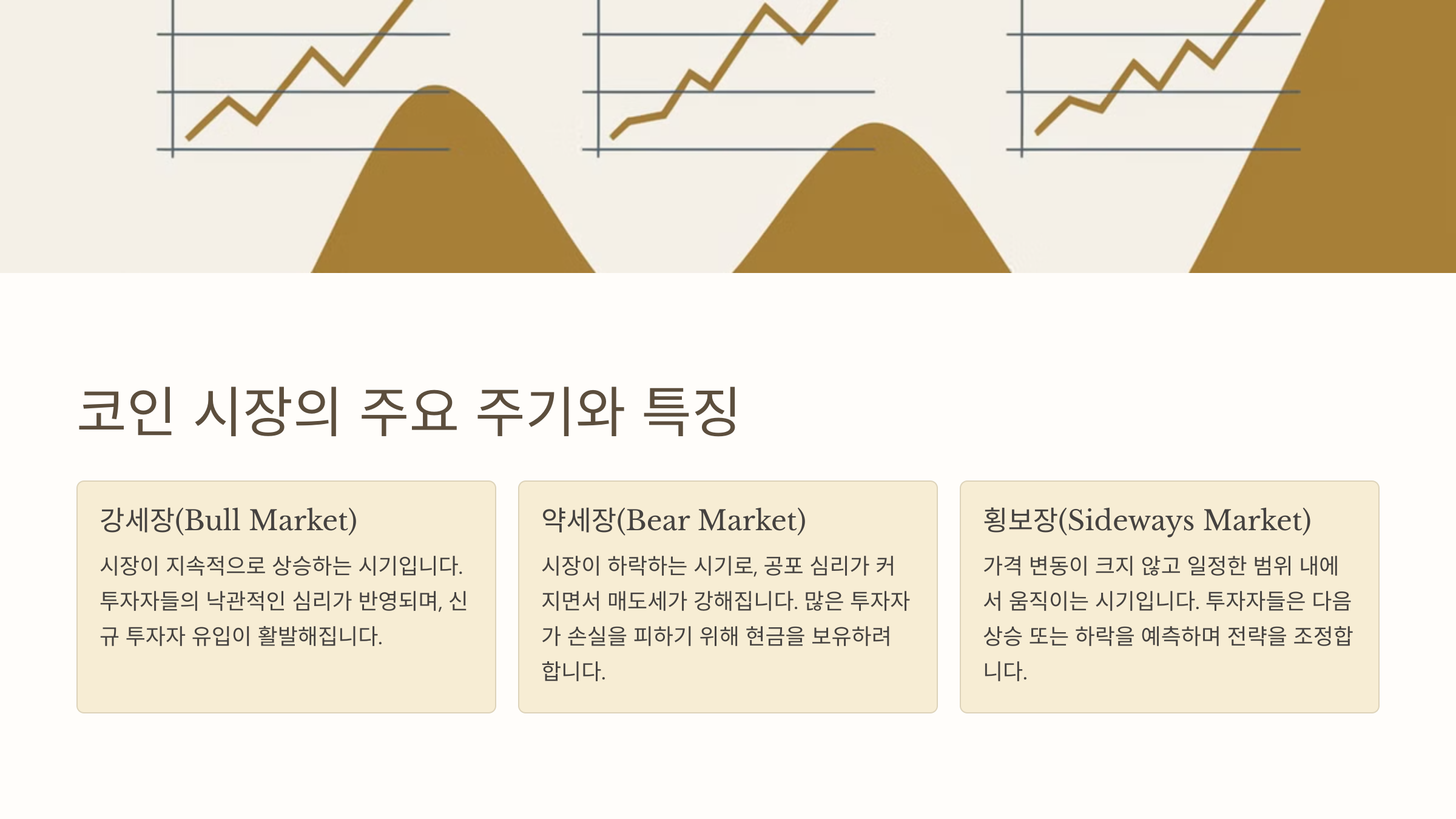 암호화폐는 투자자들 사이에서 큰 관심을 받고 있지만, 그 변동성과 시장의 특성 때문에 많은 사람에게 어려운 주제입니다. 특히, 코인의 주기(불장, 오름장, 하락장 등)를 이해하면 투자에 큰 도움이 될 수 있습니다. 이번 글에서는 암호화폐 시장의 주기와 각 단계에서 효과적인 투자 전략을 상세히 소개합니다.
