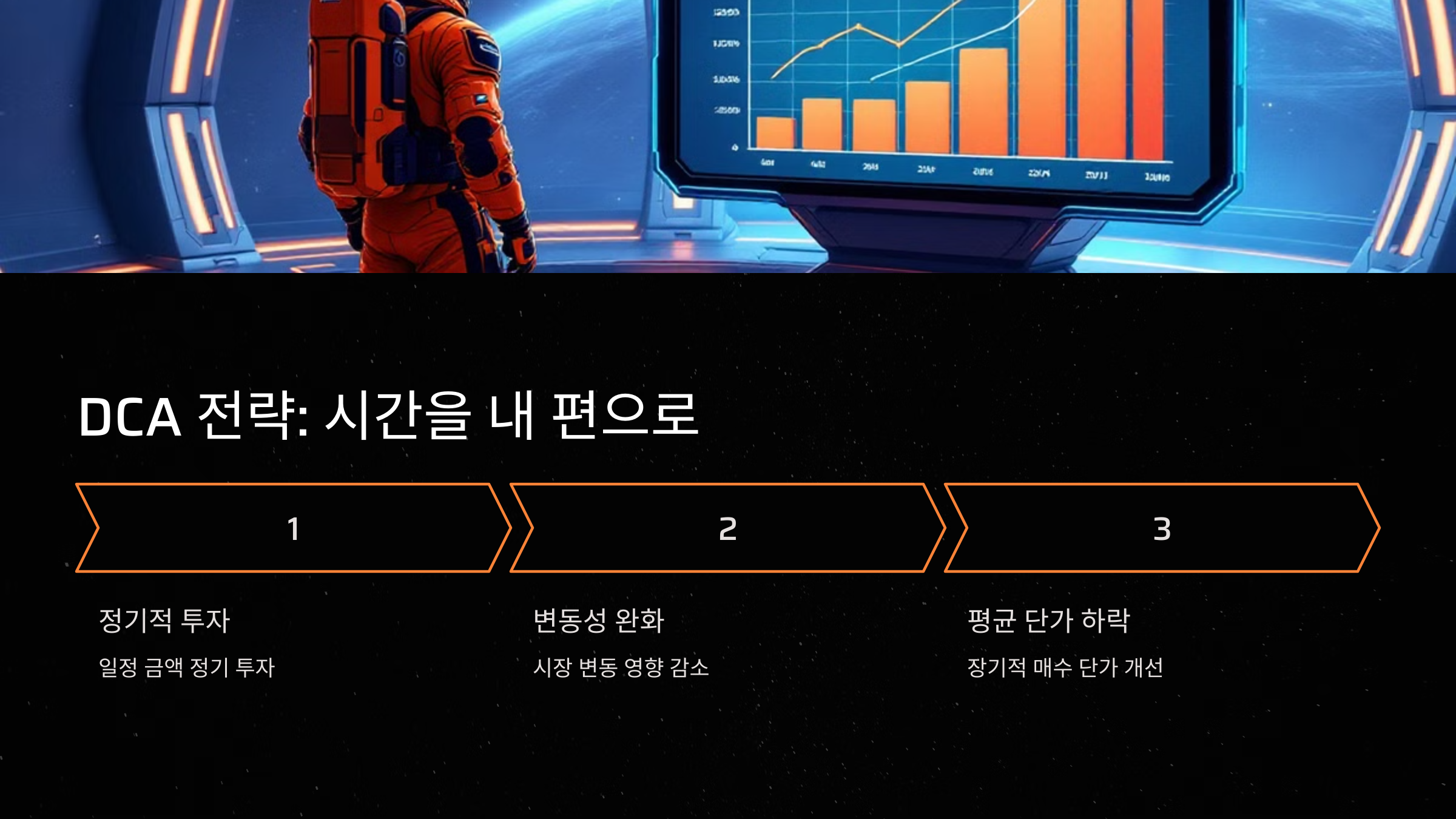 A3. DCA 전략을 활용하여 일정 금액을 정기적으로 투자하면, 시장 변동에 덜 휘둘리고 장기적으로 평균 매수 단가를 낮출 수 있습니다.