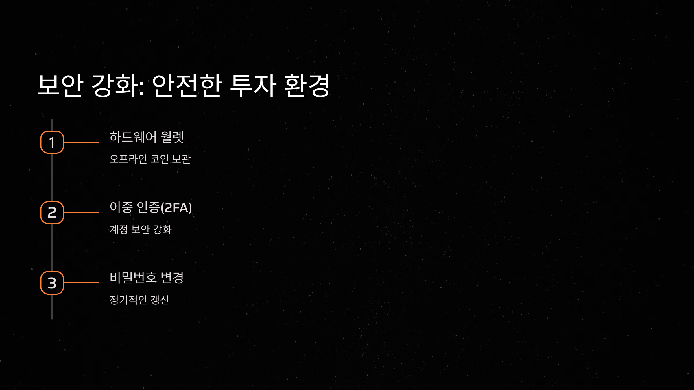 - 이중 인증(2FA): 거래소 계정과 지갑에 이중 인증을 설정하여 추가 보안층을 더하세요.