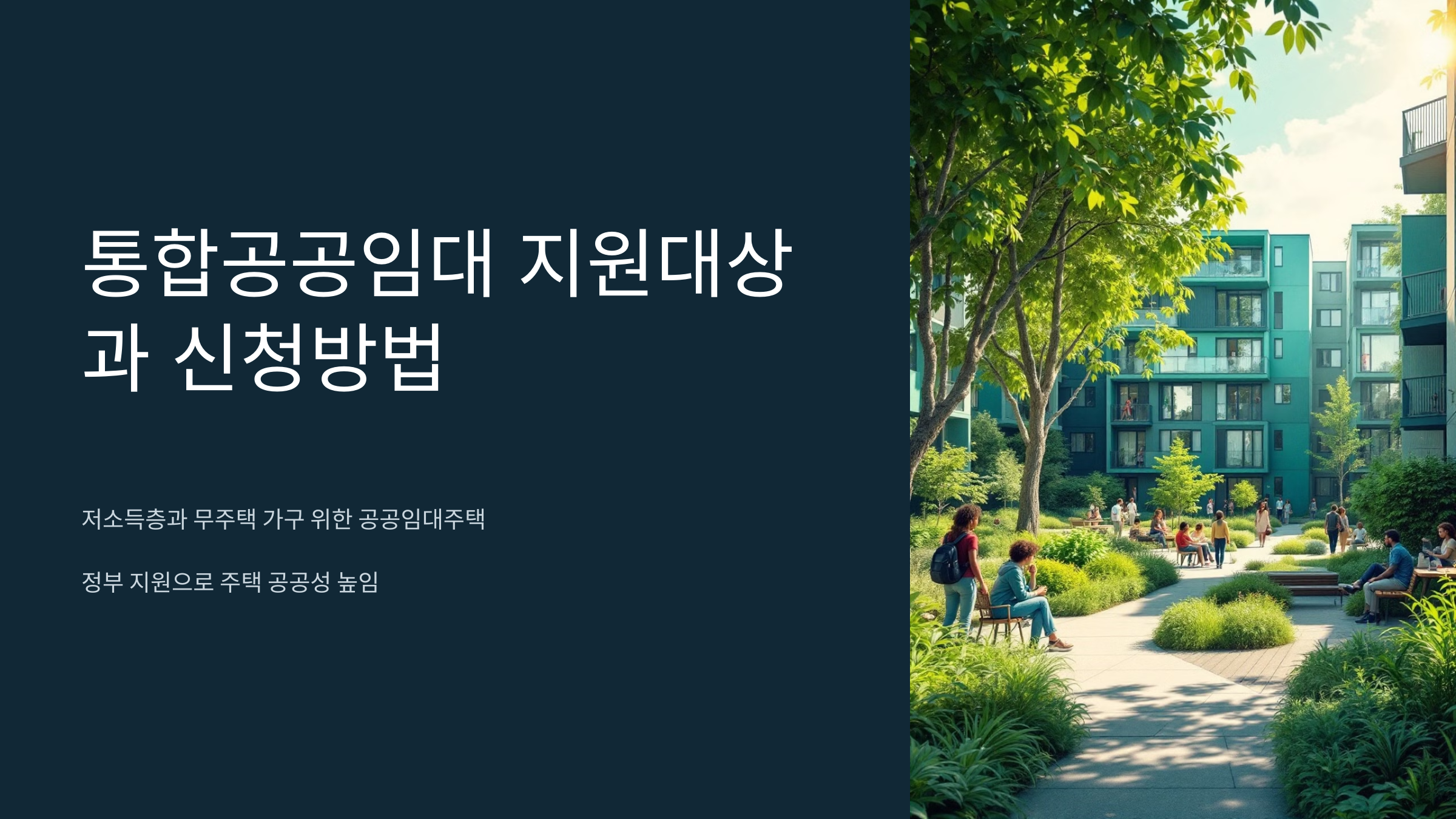 통합공공임대주택 신청은 온라인과 오프라인 두 가지 방법으로 가능합니다. 신청 절차는 대상자에 따라 다르며, 주택 신청 후 심사 과정에서 적합한 대상을 선별하여 주택을 배정합니다.