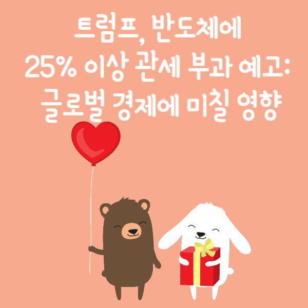 트럼프 전 대통령의 반도체에 대한 25% 이상 관세 부과 예고는 단기적으로 글로벌 경제와 무역 관계에 큰 영향을 미칠 것으로 보입니다. 한국을 포함한 여러 반도체 생산국들은 향후 이에 대한 대응 전략을 철저히 마련해야 할 시점입니다.