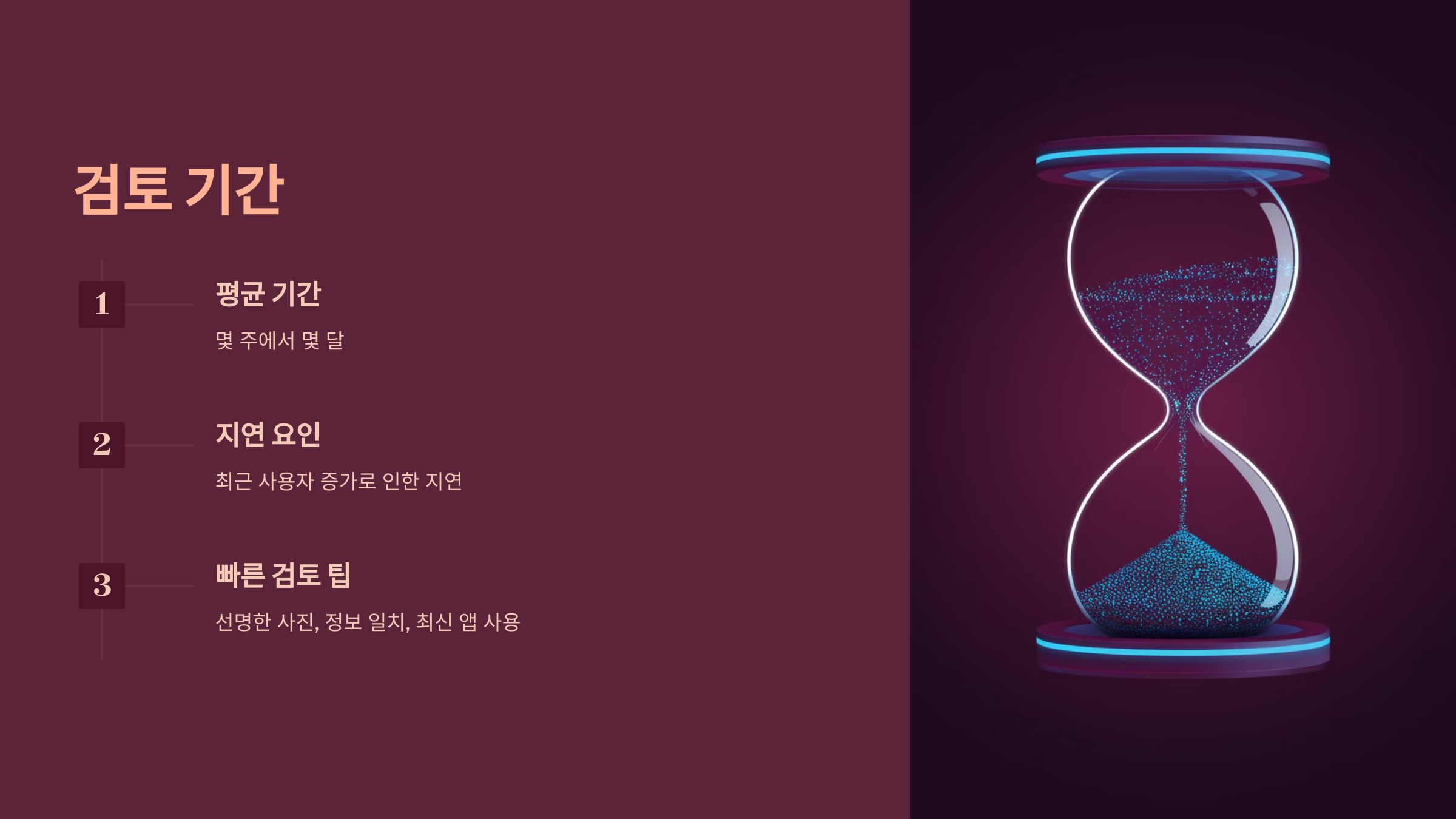 신청서 검토 기간은 평균적으로 몇 주에서 몇 달까지 걸릴 수 있어요. 특히 최근 사용자 증가로 인해 검토 기간이 더 길어질 수 있다고 해요.