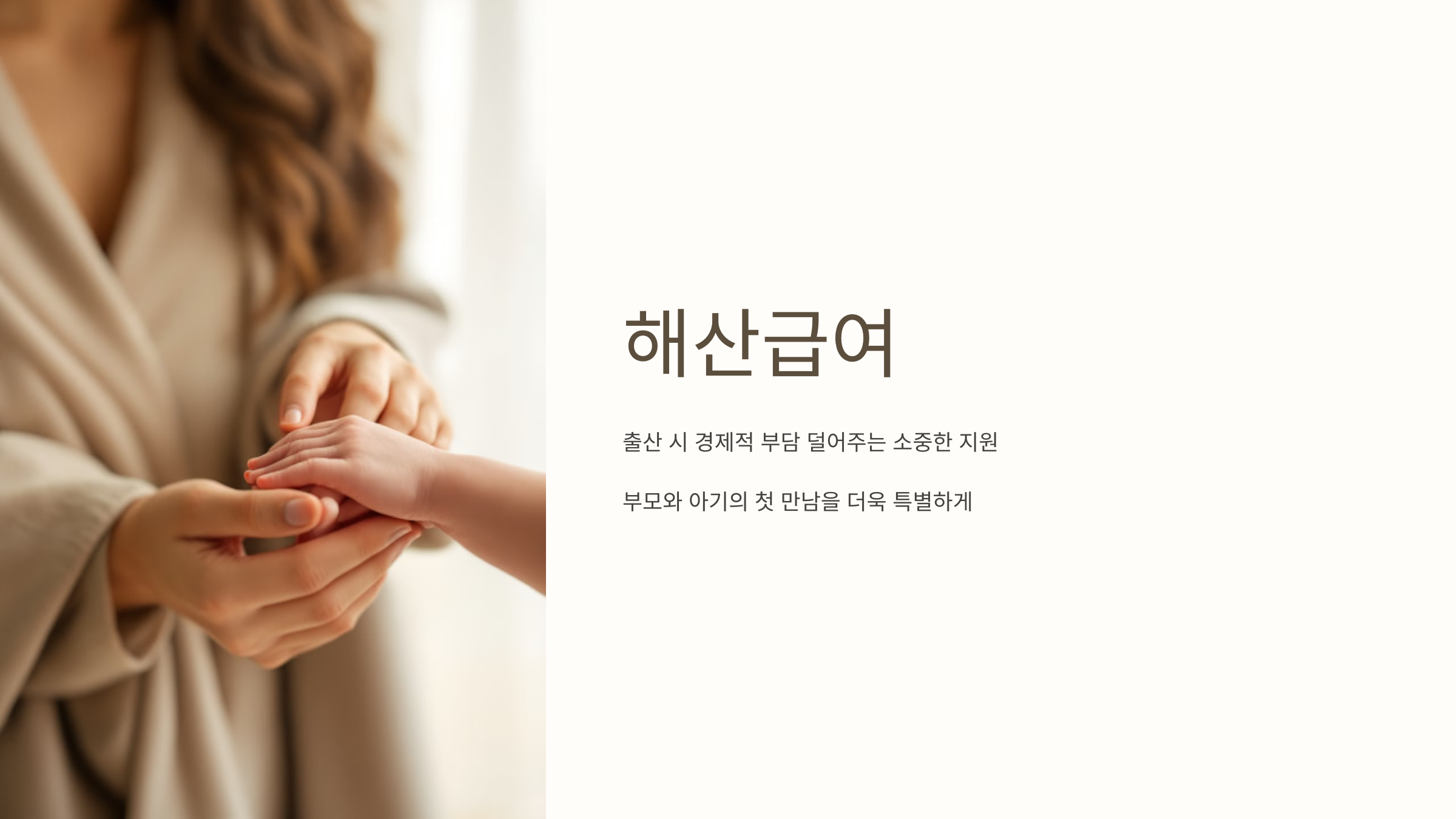 출산은 기쁨과 사랑의 순간이지만, 동시에 예상치 못한 비용과 어려움이 따르기 마련입니다. 해산급여는 이러한 부담을 덜어주고, 부모가 아기와의 첫 만남을 더욱 소중하게 기억할 수 있도록 돕는 역할을 합니다. 아기를 맞이하는 순간의 기쁨과 함께 부모가 느끼는 경제적 스트레스를 줄이는 것은 이 지원의 가장 중요한 목적 중 하나입니다.