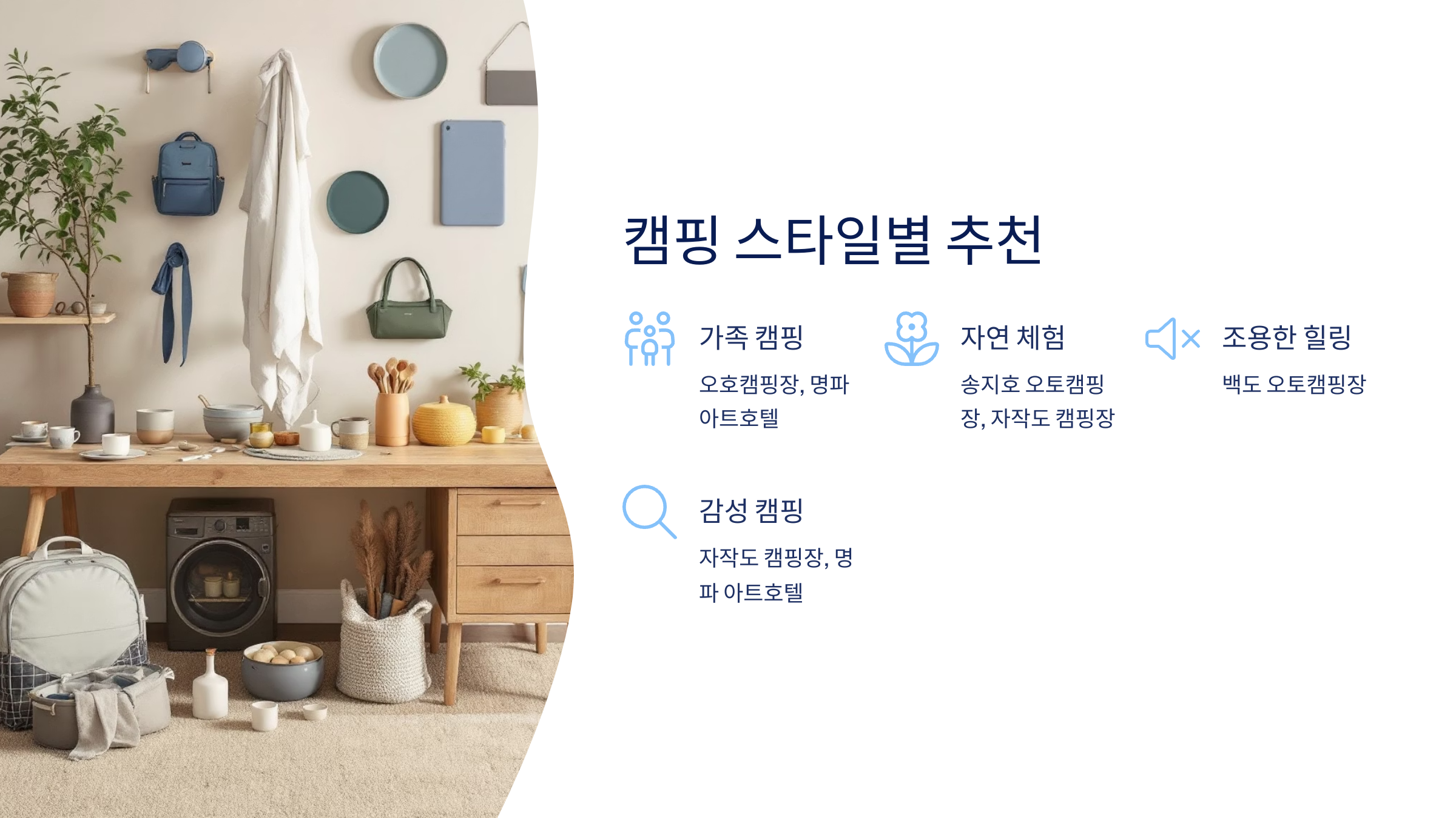 바다, 숲, 섬, 예술 감성까지 원하는 캠핑 스타일에 맞춰 골라 떠날 수 있는