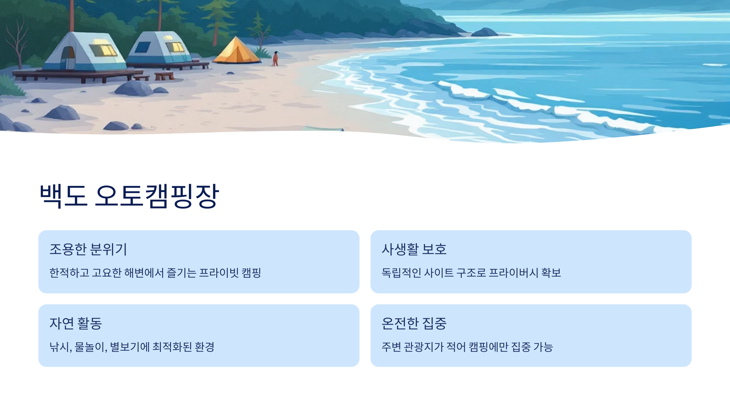 🐚 4. 백도 오토캠핑장 – 고요한 해변에서 즐기는 프라이빗 캠핑