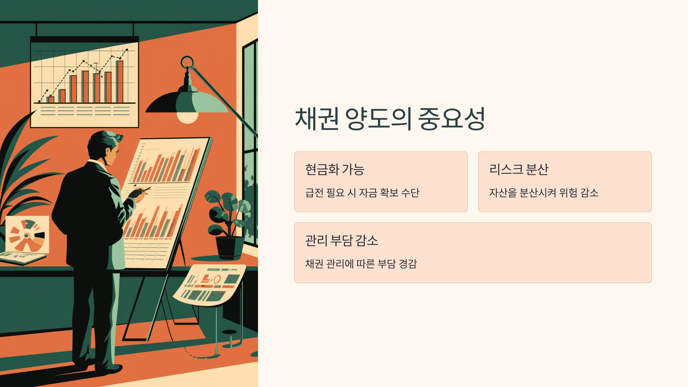 - 현금화 가능: 급전이 필요한 상황에서 채권을 양도하여 자금을 확보할 수 있습니다.