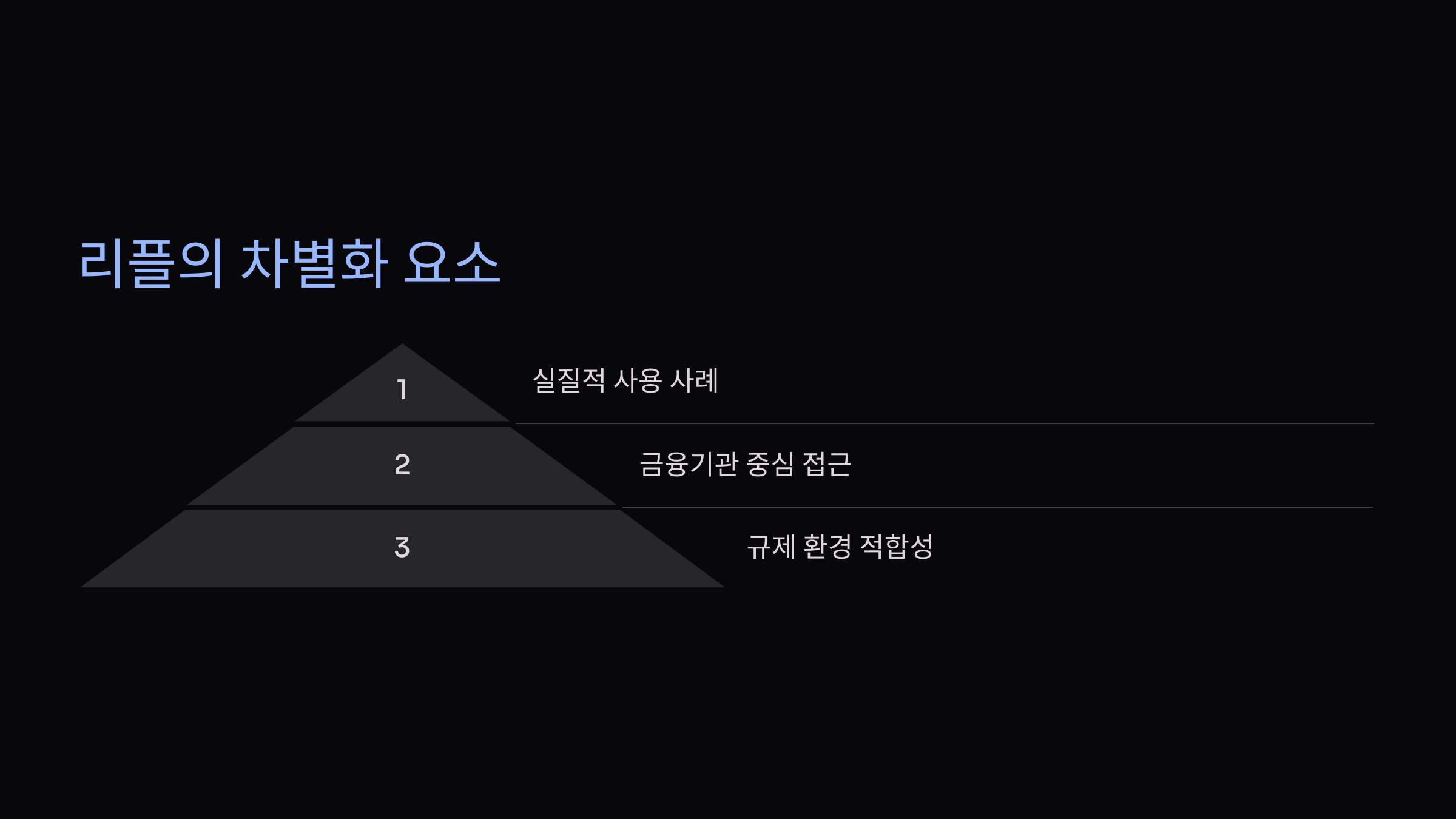 리플은 국제 송금 및 결제 시장을 목표로 삼고 있으며, 기존 금융 시스템보다 효율적인 솔루션을 제공합니다.