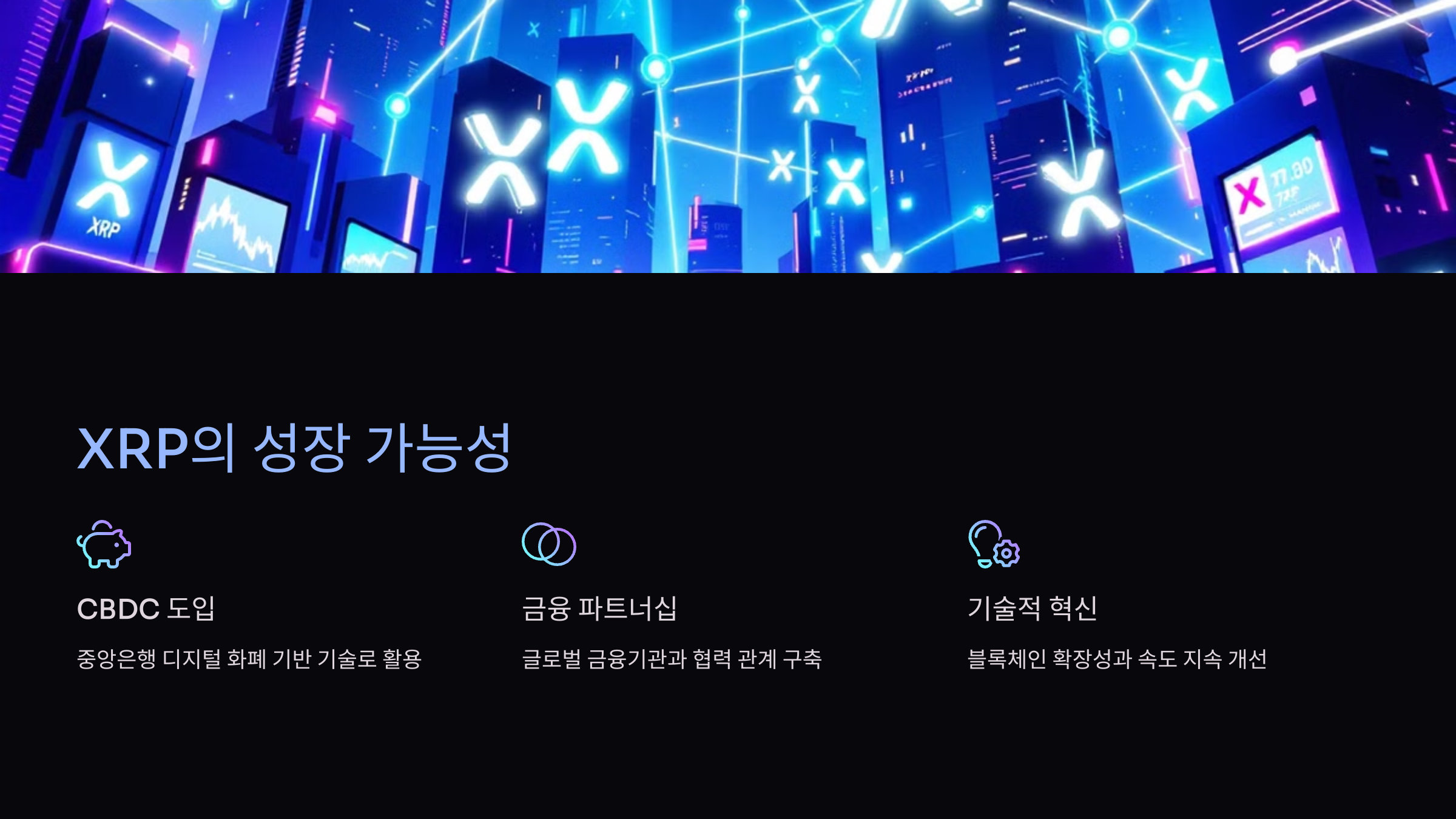- 글로벌 금융기관 및 중앙은행과의 협력을 통해 XRP의 실질적 사용 사례가 확대될 것입니다.