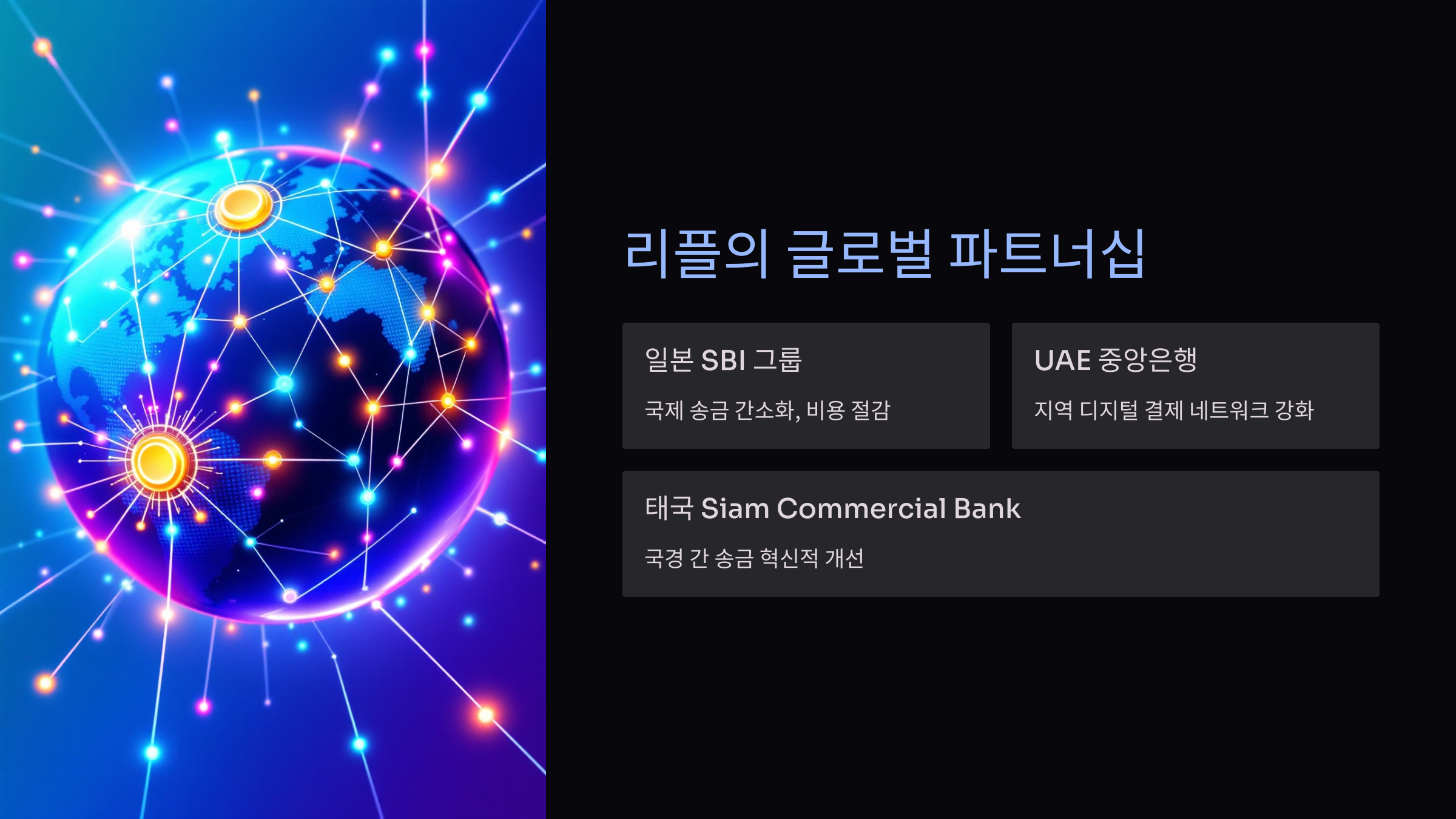 리플은 전 세계 주요 금융기관 및 정부와의 협력을 통해 국제 결제 네트워크를 확대하고 있습니다.