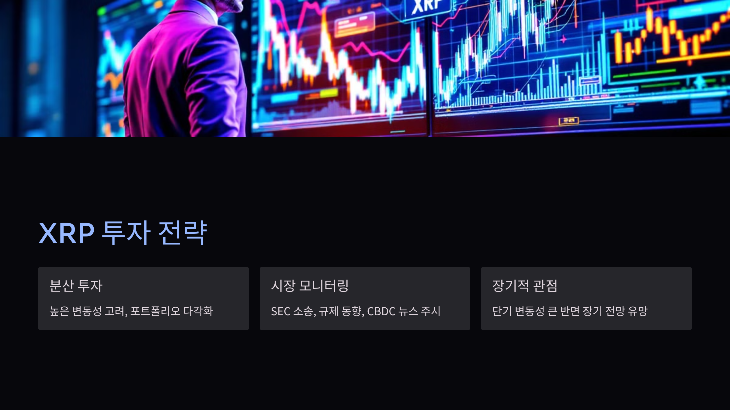 암호화폐는 본질적으로 변동성이 높으며, XRP 역시 단기적인 가격 급등락의 가능성이 큽니다. - 규제 환경의 변화