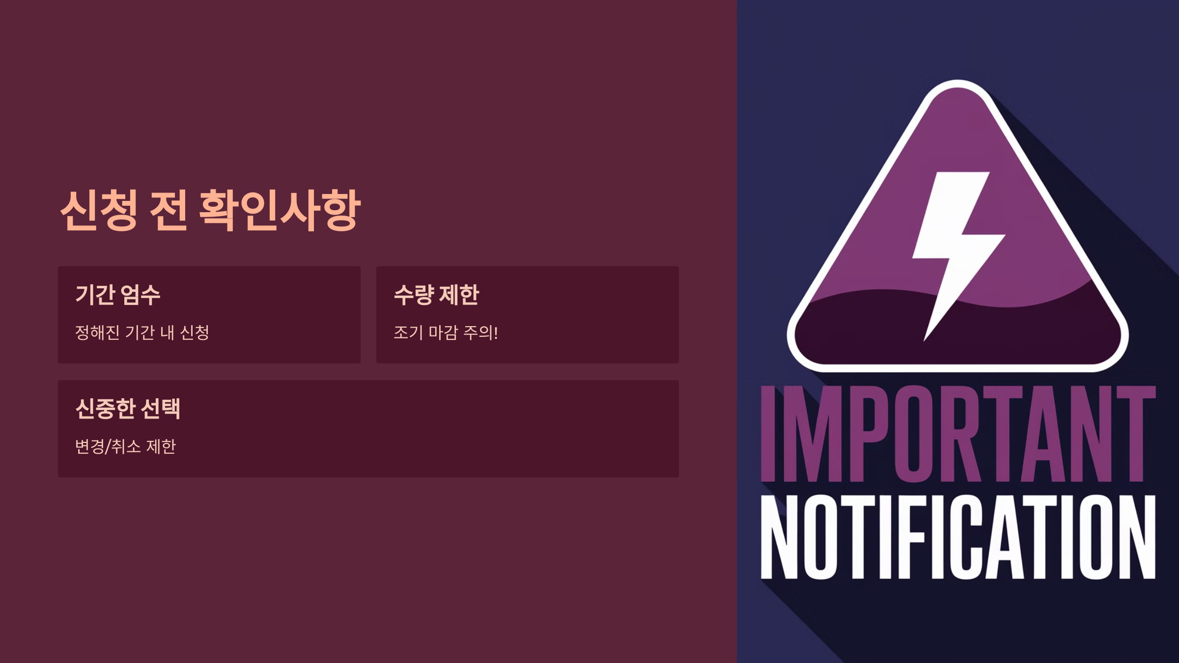 - 신청 완료 후 변경이나 취소가 제한될 수 있습니다.