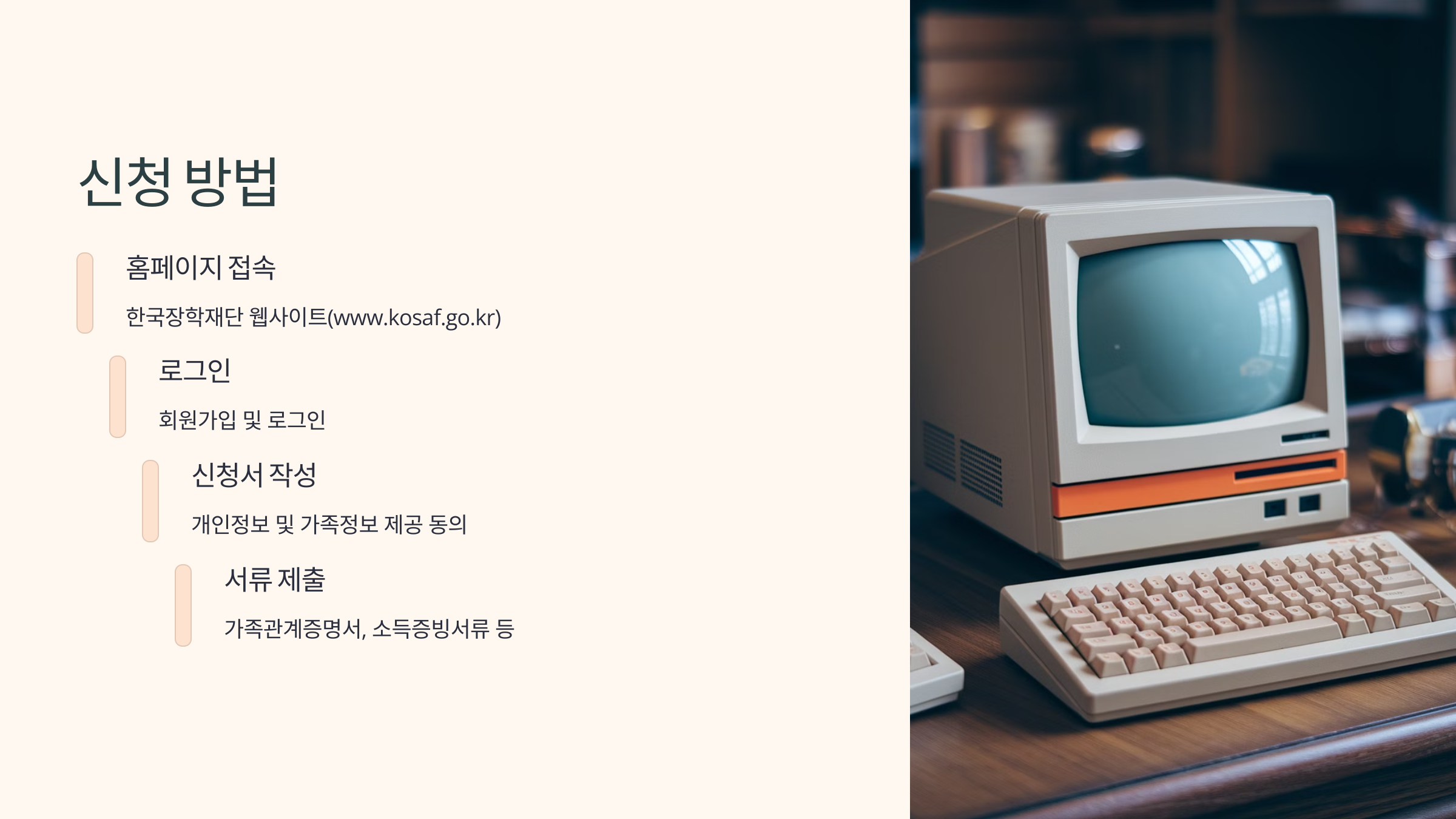- 필요 서류 제출 (가족관계증명서, 소득증빙서류 등)