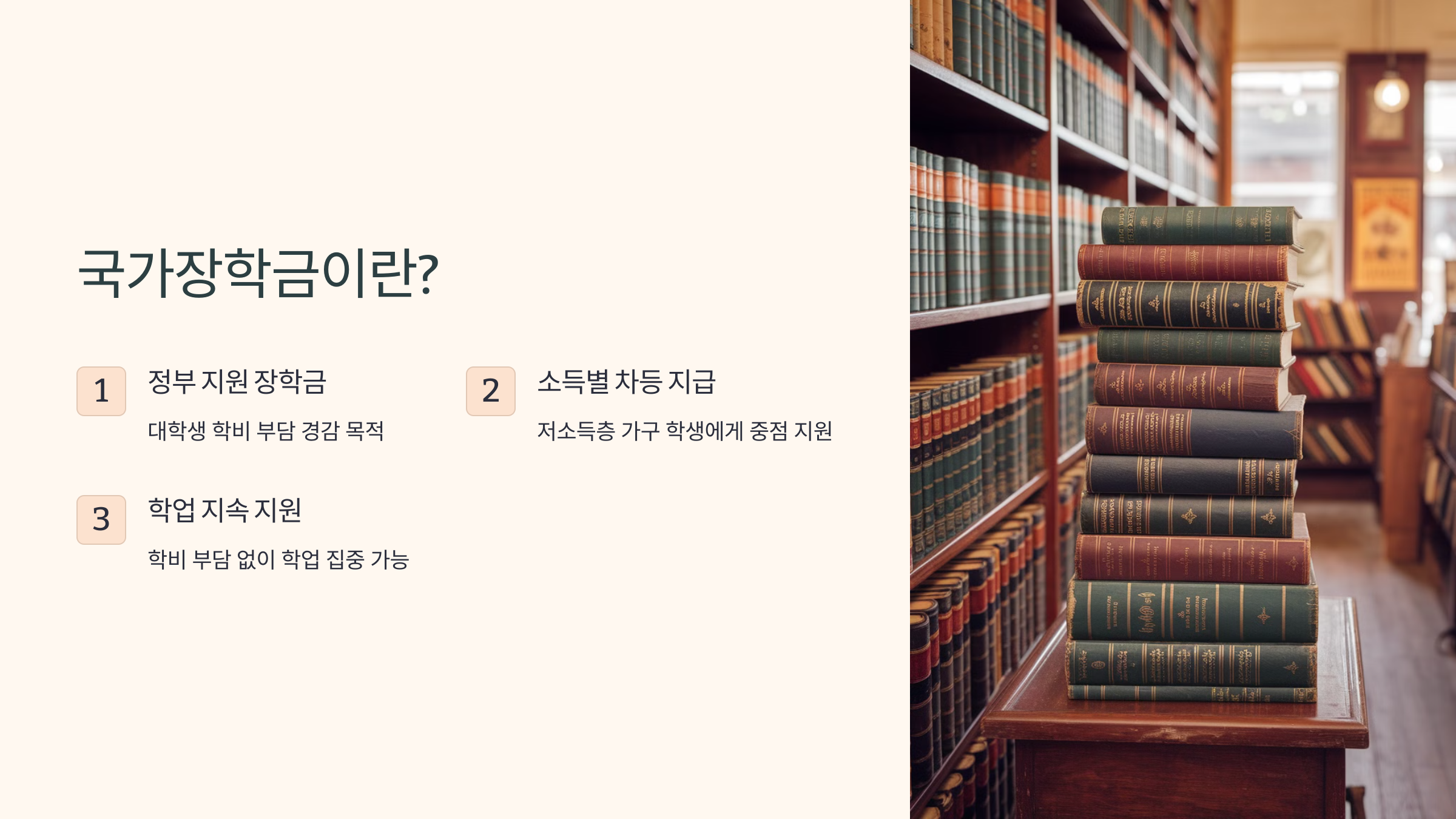 국가장학금은 대한민국 정부가 대학생들의 학비 부담을 덜어주기 위해 제공하는 장학금 제도입니다. 소득 수준에 따라 차등 지급되며, 대학생들의 학업 지속을 돕는 중요한 지원 사업입니다. 특히 저소득층 가구의 학생들에게 큰 도움이 되며, 학비 부담 없이 학업에 집중할 수 있도록 지원합니다.