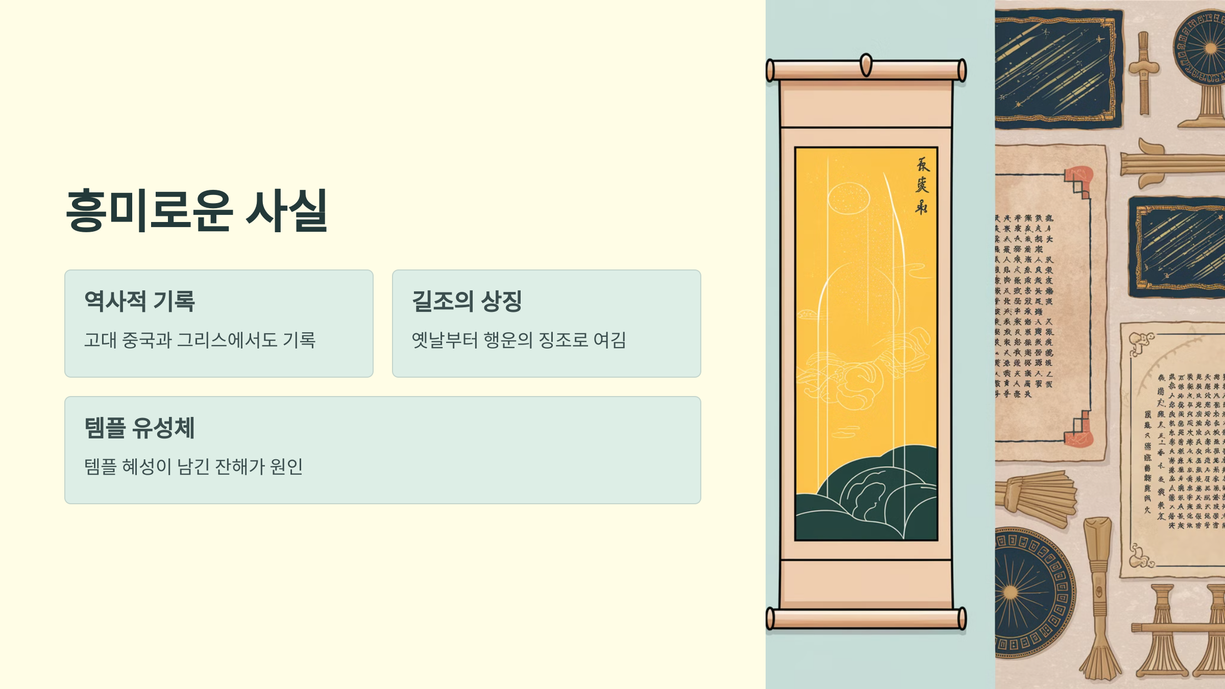 리리드 유성우는 역사적으로도 중요한 유성우입니다. 고대 중국과 그리스에서도 리리드 유성우를 기록한 문헌이 남아 있으며, 그 당시에도 많은 사람들이 유성우를 길조로 여겼습니다. 또한 리리드 유성우의 원인인 **템플 유성체(Taylor comet)**는 지구와 가까운 궤도를 지나면서 유성우의 원천이 되는 잔해를 남깁니다.