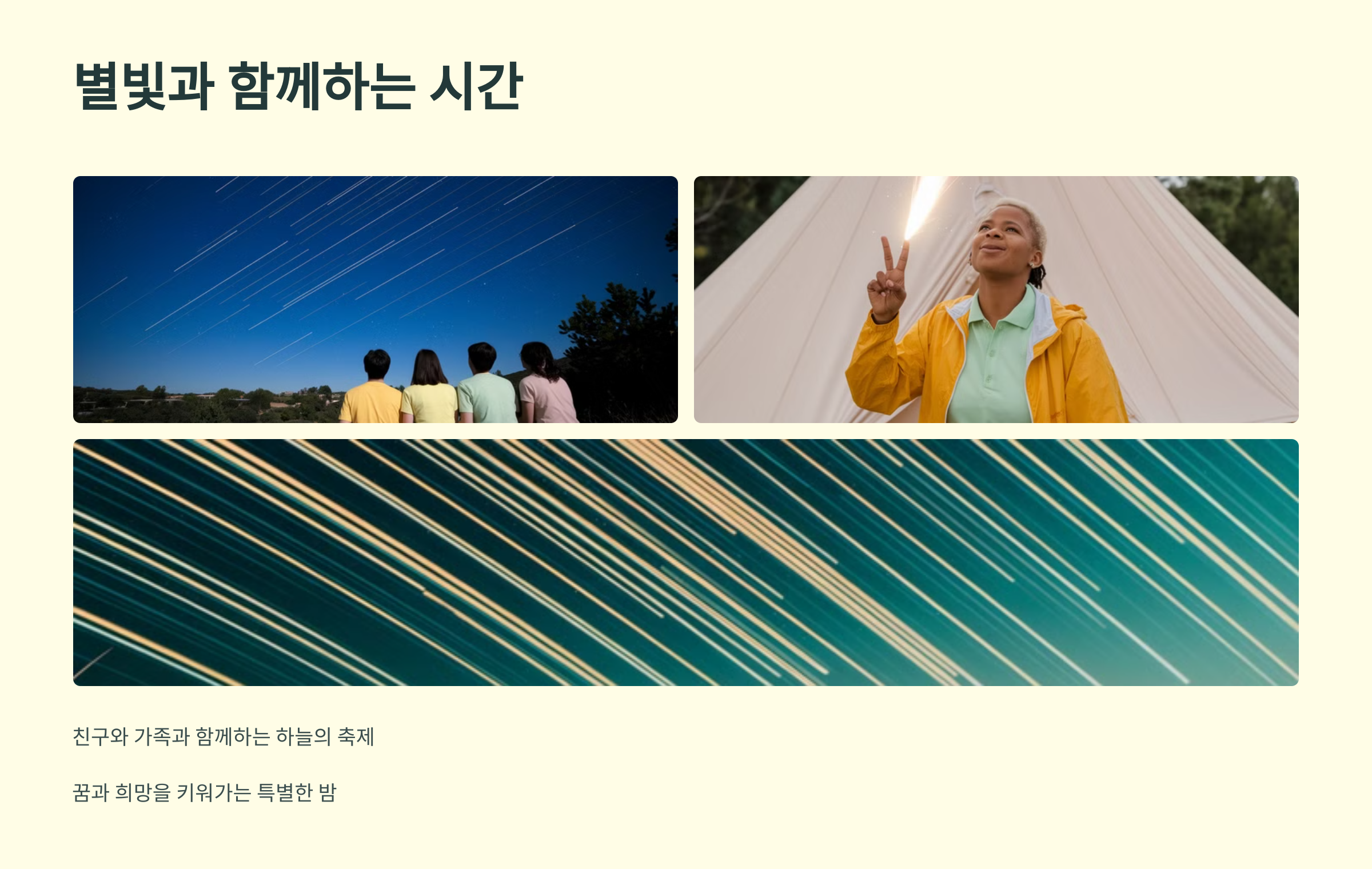 | 2 | 빛공해가 적은 어두운 장소에서 관측해야 유성우가 선명하게 보입니다. |