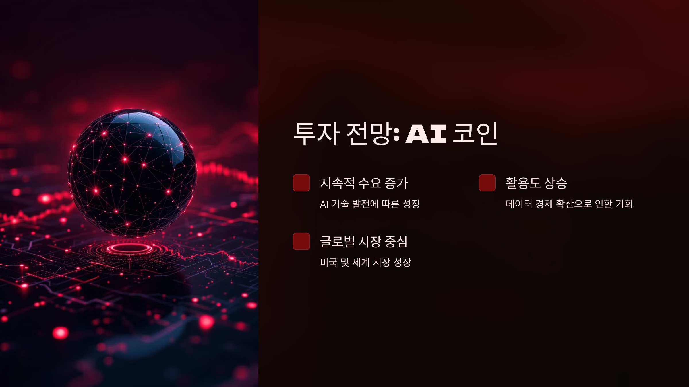 👉 AI 코인은 기술 발전과 데이터 시장의 성장에 따라 장기적으로 유망한 투자처가 될 가능성이 큽니다. 하지만 AI 코인 프로젝트의 실질적인 성과가 중요하며, 규제 변화에도 주의해야 합니다.