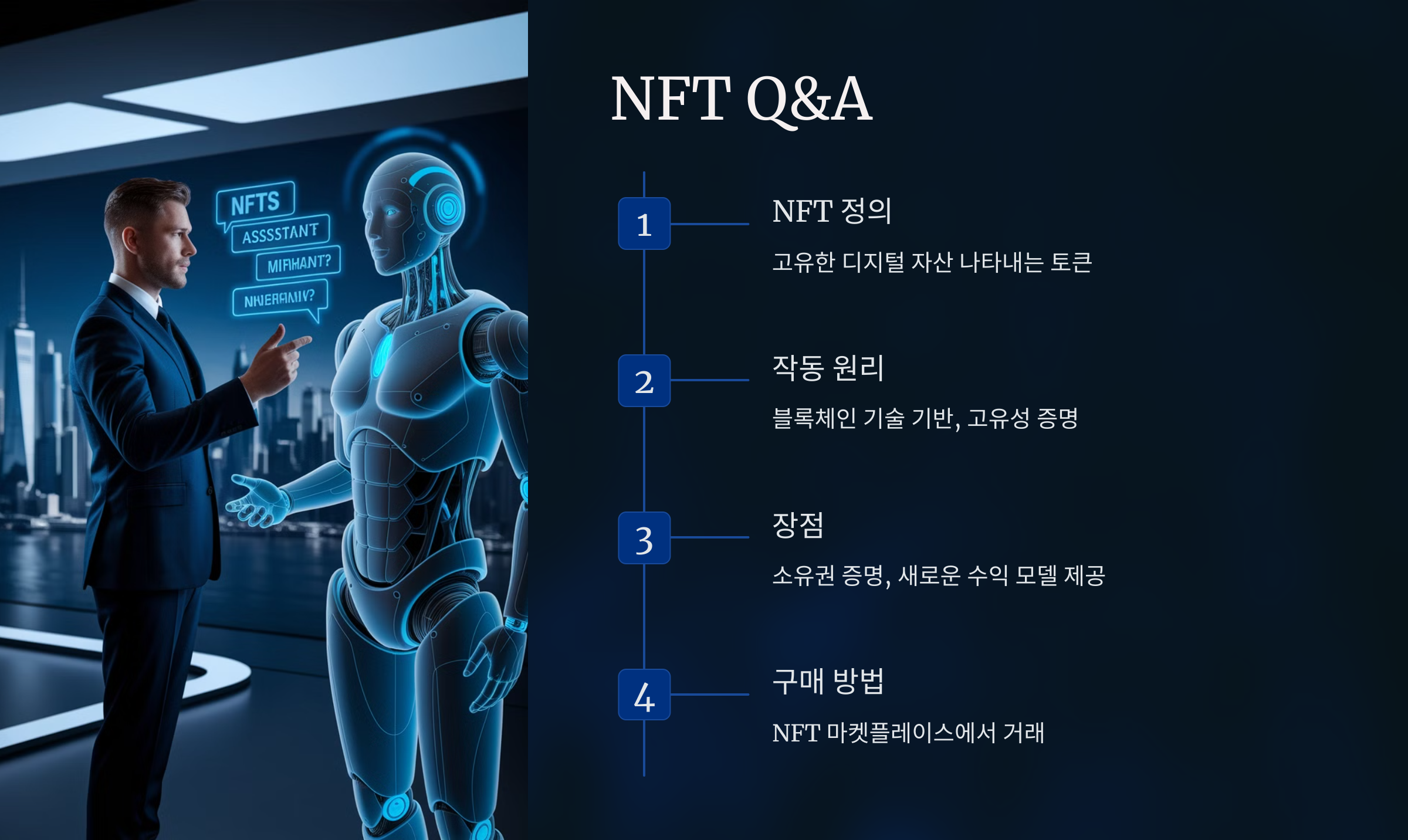 A3: NFT는 고유성, 소유권 증명, 불변성 등의 특징을 가지고 있어 디지털 자산의 원본을 증명하고 거래할 수 있게 해줍니다. 이를 통해 예술가와 콘텐츠 제작자에게 새로운 수익 모델을 제공합니다.