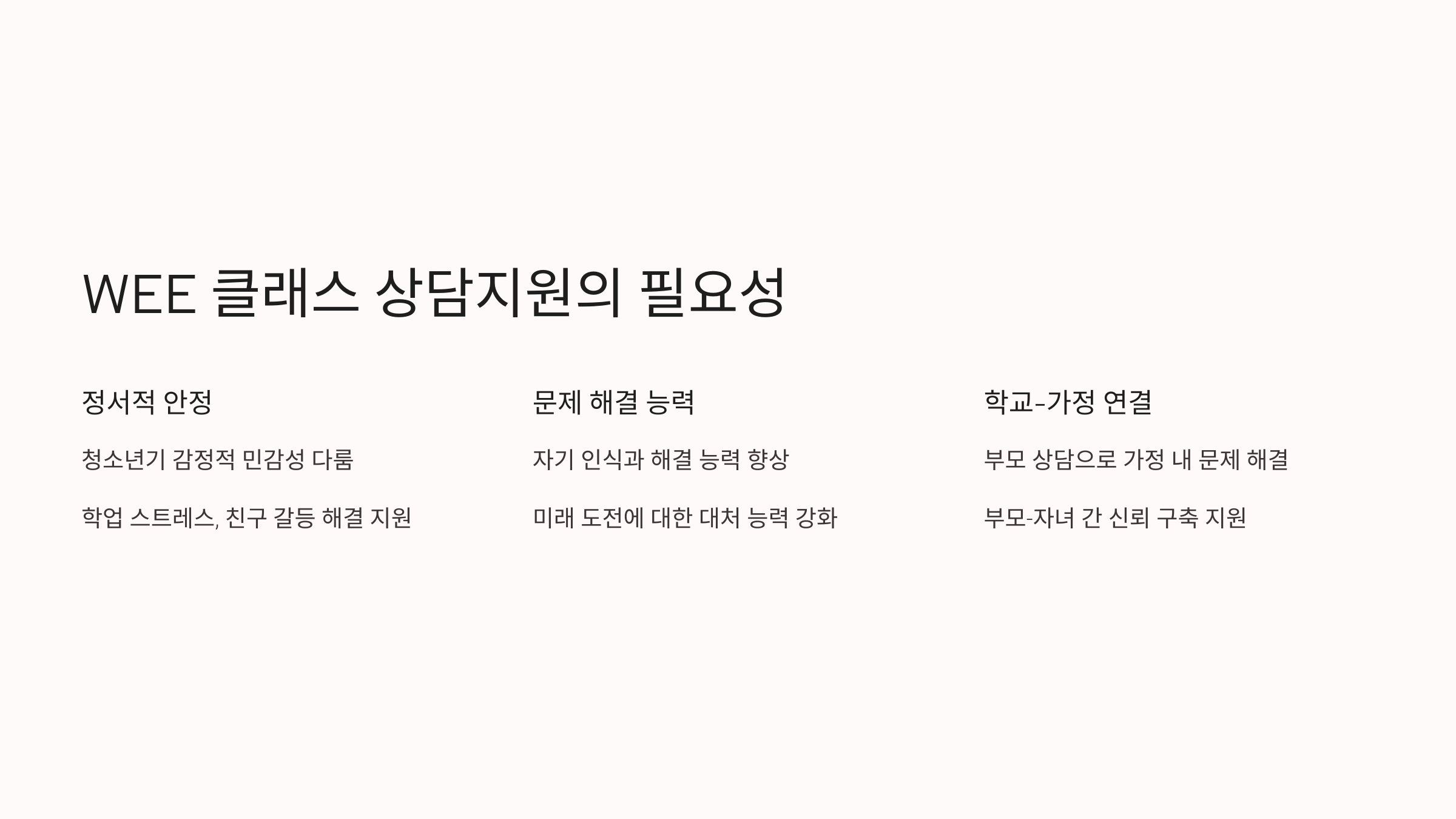 WEE 클래스 상담지원이 필요한 이유